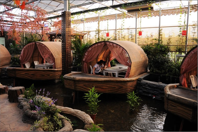 陜西生態(tài)餐廳又名生態(tài)園,是近年來(lái)發(fā)展起來(lái)的一種嶄新的餐飲休閑形式,滿(mǎn)足了人們要求回歸自然,返璞歸真的美好愿望,生態(tài)餐廳是將餐廳景觀(guān)建在溫室中,采用造園技術(shù)將山、水、樹(shù)木、花草與餐廳的功能分區有機結合,凝聚了溫室工程、建筑安裝工程、裝飾裝修工程、園林景觀(guān)營(yíng)造、綠植種植等為一身,營(yíng)造出一種優(yōu)美的生態(tài)自然的就餐環(huán)境。